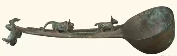 商代晚期羊首勺,通长17.5厘米,深4.8厘米,现藏于陕西历史博物馆
