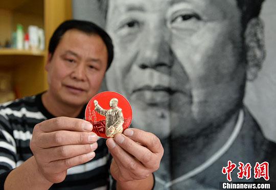 12月25日,河北邢台市民李树林在家中展示其收藏的毛泽东像章。中新社发 黄涛 摄 2014年12月25日,河北邢台市民李树林在家中展示其收藏的毛泽东像章。中新社发 黄涛 摄 据了解,自1988年以来,他开始通过各种渠道收集各类红色藏品。目前,已收集了10万余枚毛泽东像章,以及以毛泽东为主题的丝织品、瓷制品、书籍、报刊、摆件等数千件。有着“红色情结”的李树林希望以后能开一家红色文化主题纪念馆,向广大市民展示自己的藏品。