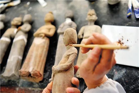文物修复师正在修复唐代陶俑