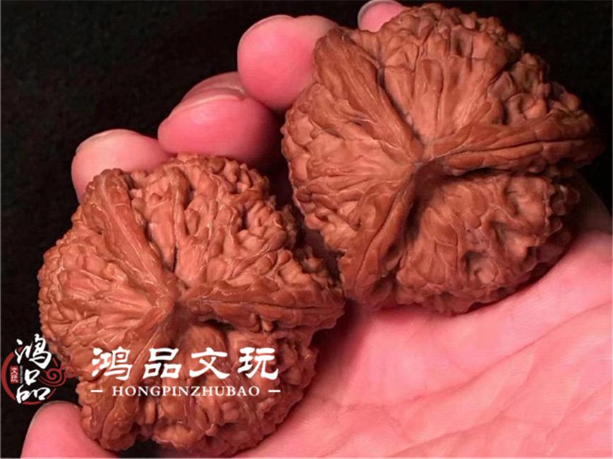 近几年来,核农为了提高产量,大量嫁接文玩核桃,这是产量剧增的原因。但是为什么精品文玩核桃越来越少呢?主要有两方面的原因:第一是很多文玩核桃树龄太年轻,结的果皮质太差。比如今年的苹果圆很多皮质都达不到文玩核桃的标准。第二是夹板、打药、化肥催生等人工干预的方式使文玩核桃整体质量下降。今年夹板的四座楼可以说一万个核桃还挑不出一对像样的,夹得扁扁的,看着非常不自然。
