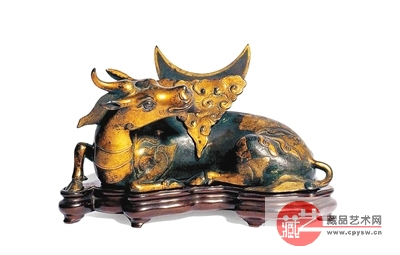 “犀牛望月”铜摆件。在我国民间,有“犀牛望月,财神自来”的说法,并有“犀牛镇家灵,望月回天庭。虔诚月儿圆,财神来光临”的顺口溜。在山西乔家大院,便有犀牛望月镜,被乔家人视为生财镇宅之宝。笔者收藏的这件“犀牛望月”铜摆件,为明代之物,乃精铜所制,包浆古朴。只见犀牛鬃毛卷曲,瞪眼獠牙,体型健硕,身材匀称,看起来康健有力。在它身上,有祥云缭绕的弯月图案,“犀牛”回首望月,深情款款,含情脉脉。这件摆件长15.1厘米,宽18.5厘米,高11.2厘米,形象自然,造型生动,工艺精湛,令人顿生喜爱。
