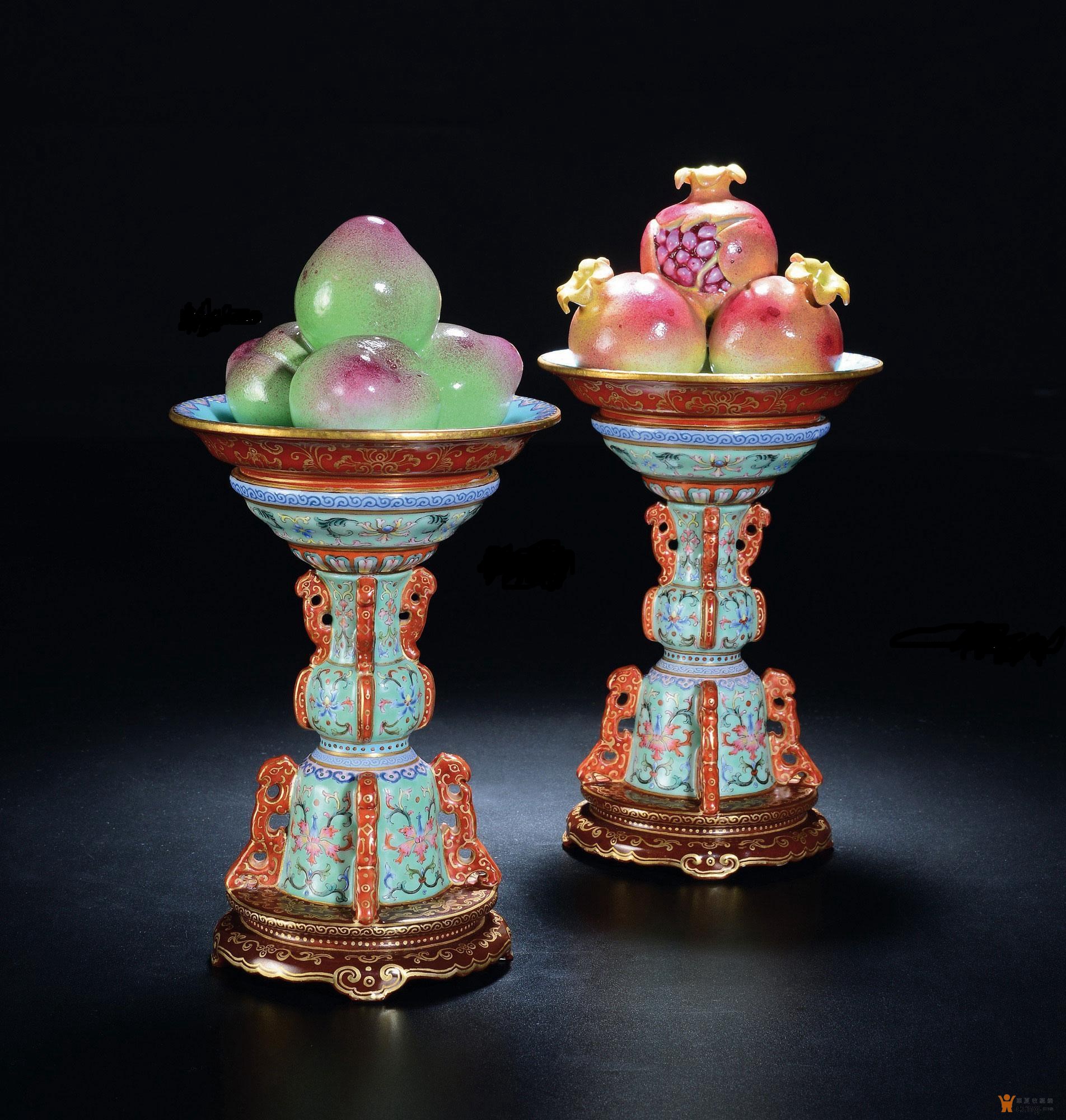 北京东正2017年春季艺术品拍卖会将呈拍一对乾隆时期的洋彩塑果高足供盘,现先一同鉴赏一番。