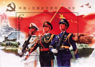 “军旗映方寸,邮票显军魂。”鲜红的“八一”军旗庄重而隽永,五角星的光芒绽放着人民军队的荣耀和自信。