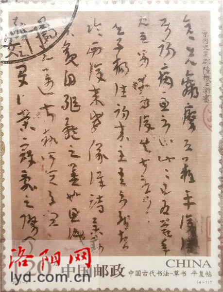 中国邮政在2011年4月15日发行的《中国古代书法——草书》4枚邮票中,有3枚和洛阳联系密切。