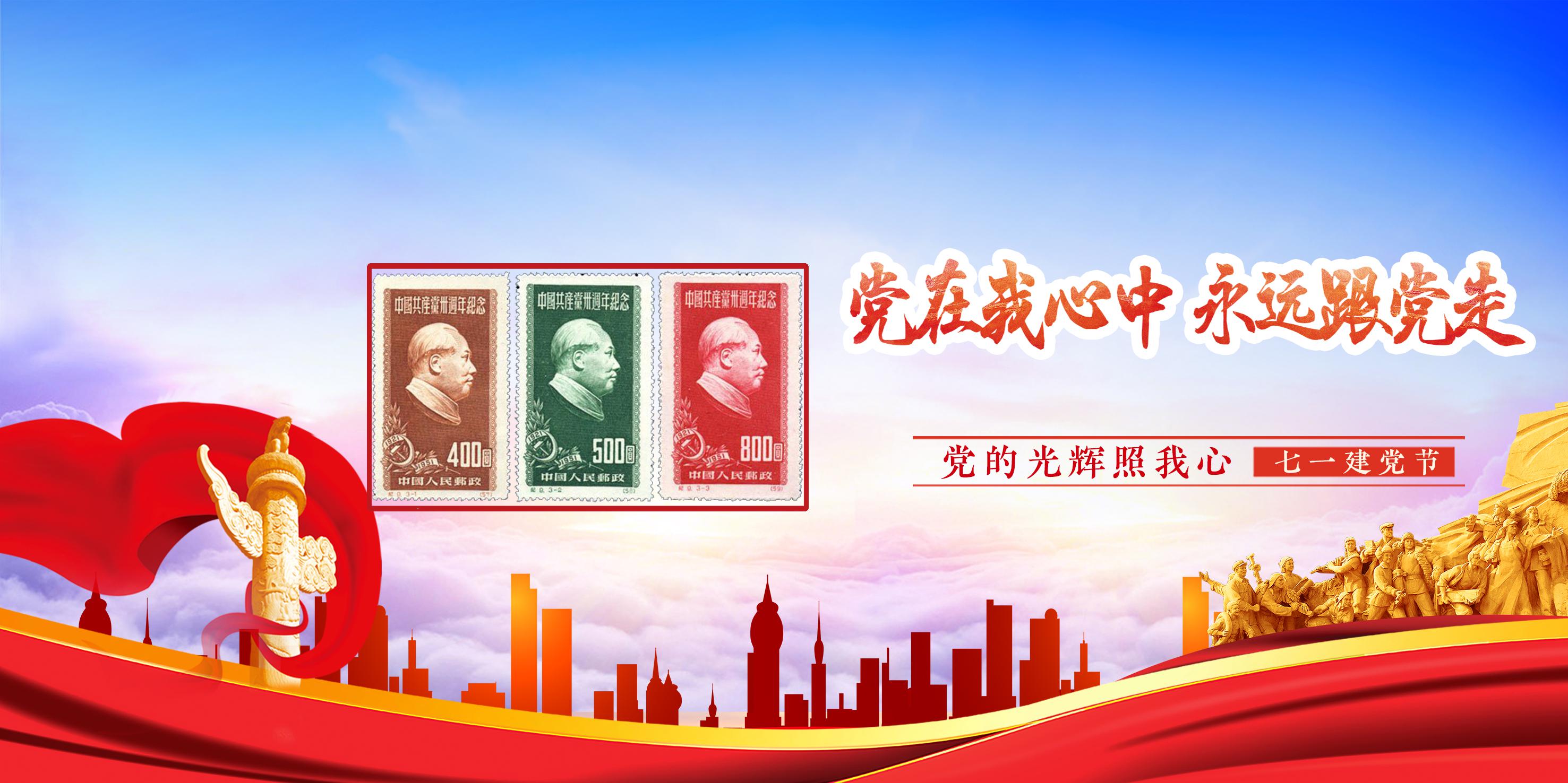 1921年7月23日至31日,中国共产党第一次全国代表大会在上海举行。从此,在中国出现了完全新式、以共产主义为目的、以马克思列宁主义为行动指南的统一的工人阶级政党。1951年,中国革命终于取得了全面胜利,建立了工人阶级领导的以工农联盟为基础的中华人民共和国,中国开始走上了社会主义道路。为了纪念中国共产党成立30周年,中国邮电部于1951年7月1日发行了志号为纪9《中国共产党三十周年》的纪念邮票,这也是我国发行的第一套中国共产党纪念邮票。