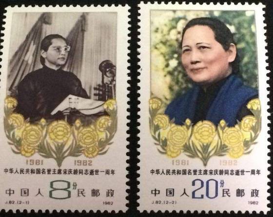 1982年 5月 29日为纪念宋庆龄逝世一周年(J.82), 1993年 1月 27日为纪念宋庆龄诞生 100周年(1993-2),我国先后两次为宋庆龄这位伟大女性发行专题邮票。这是中国人民给予享有“国母”盛誉的宋庆龄同志的最高殊荣。