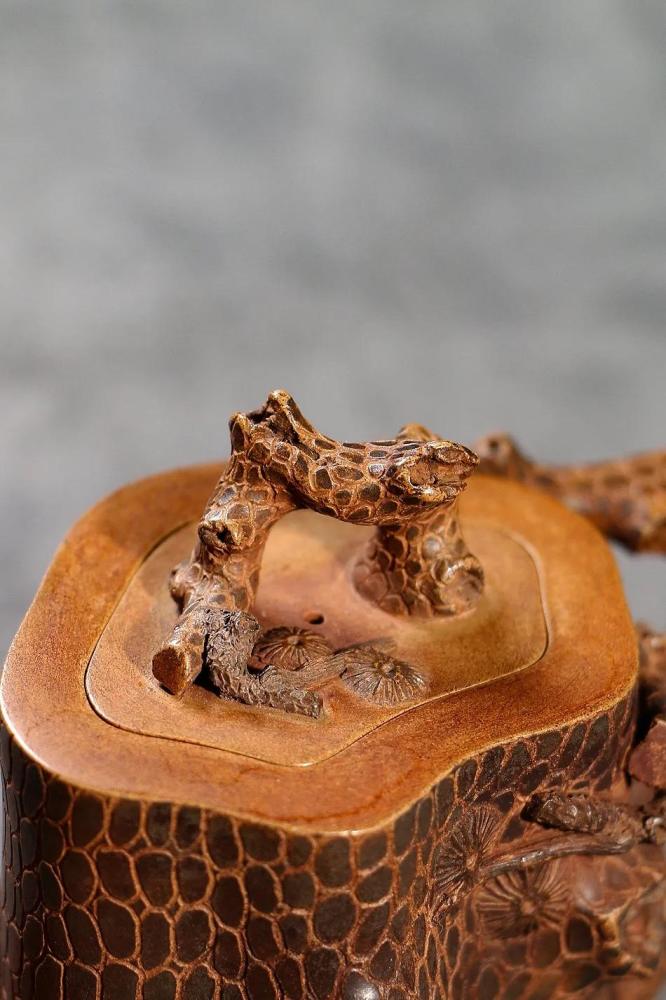 冯桂林,男(1902-1945),字民生,宜兴人,近代紫砂壶名家,被誉为一代英才,为江苏省立陶器厂“利永陶工传习所”第一批艺徒,师从范大生、程寿珍等名师。他继承传统,时出精品,尤善以竹为题材,创作设计许多新壶,如竹根壶、圆竹段壶、松段壶、梅桩壶、三友壶、四方竹段茶具等,风格独特,构思巧妙;他的制品先后曾用“卷翁”、“金鼎商标”、“立信”等款式作印记。一生创制紫砂花货精品甚多,仅新品种类就达二百余种,实为紫砂壶史上少有的奇才。