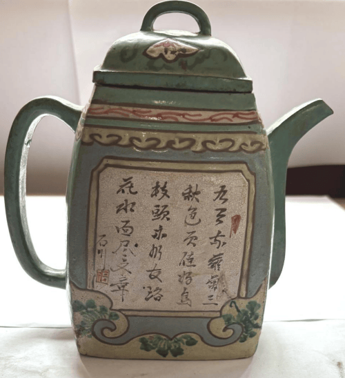 从艺术价值角度,其独特的汉方造型设计,在紫砂壶型中独树一帜,体现了古代匠人对几何美学的精妙运用;绘画、书法、雕刻等多种装饰技法的结合,展现了高超的艺术表现力,无论是图案的布局、色彩的搭配,还是书法的韵味,都达到了极高的艺术水准,是清代乾隆年间紫砂艺术的典范之作,对研究当时的工艺技术、审美观念和文化风尚具有重要的实物参考价值。