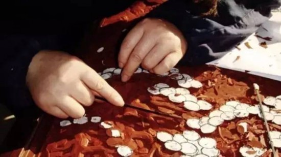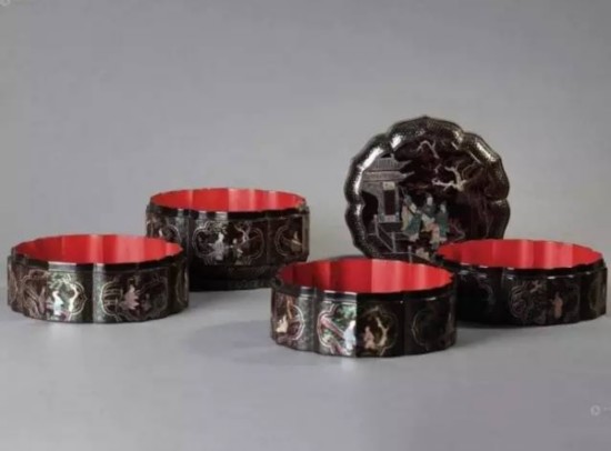 对贝类进行打磨,装饰到器具上的工艺,是汉人民族特有的工艺。由于螺钿是一种天然之物,外观天生丽质,具有十分强烈的视觉效果,因此也是一种最常见的传统装饰艺术,被广泛应用于漆器工艺品上。