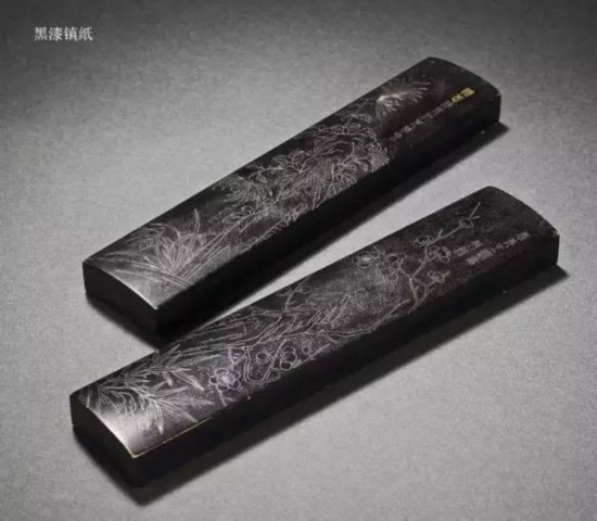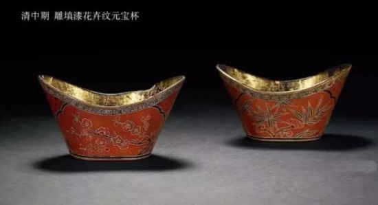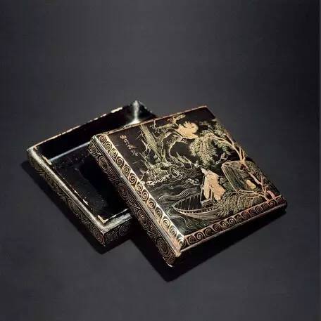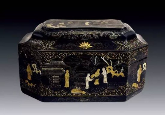 先在漆地上刻画出图案,于刻纹内上漆后,然后填以金银箔,效果极其富丽。