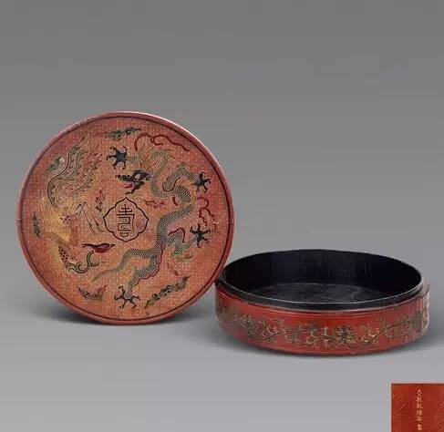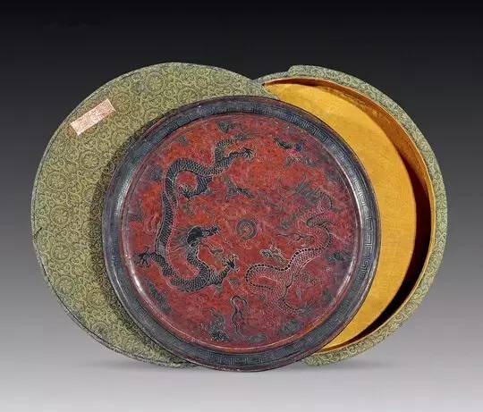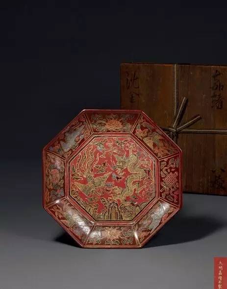 明嘉靖 戗金彩漆龙凤寿字纹八棱盘