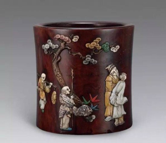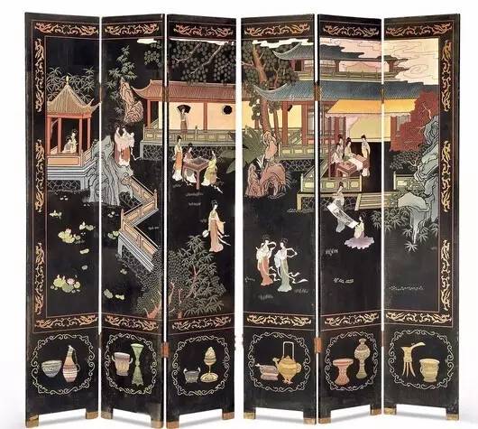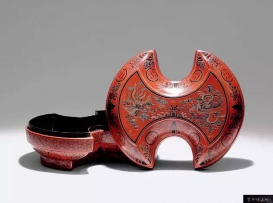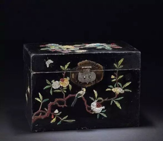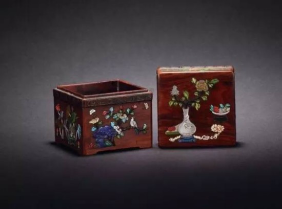 百宝嵌漆器:将各种宝物,如宝石、象牙、珊瑚以及玉石等材料有机结合到器物上,百宝生辉、使器物尽显富贵奢华之气。百宝嵌的图案花纹会随着照射光线角度的变化,发出各种各样的光彩,是我国古代工艺美术的一绝。
