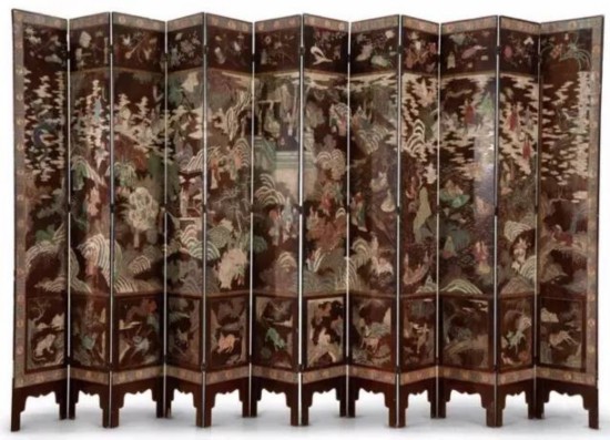 清康熙庚辰年款彩「羣仙祝寿」图十二扇屏风