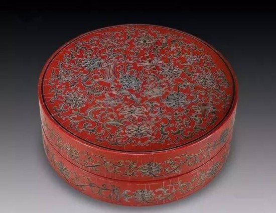 先用填漆的方法做好花纹,然后沿着花纹轮廓勾出阴文线,勾出花纹上的纹理,增加画面丰满度之后,再在阴文线内填金,雕填技法盛行于明清两代。