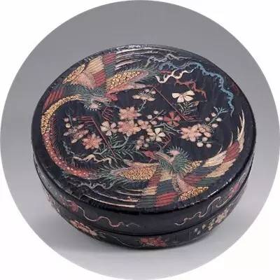 清 紫檀嵌百宝描漆花鸟纹盖盒