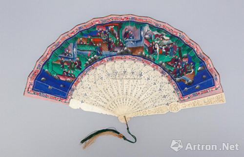 清象牙嵌状元透雕象牙骨折扇宽51.5cm