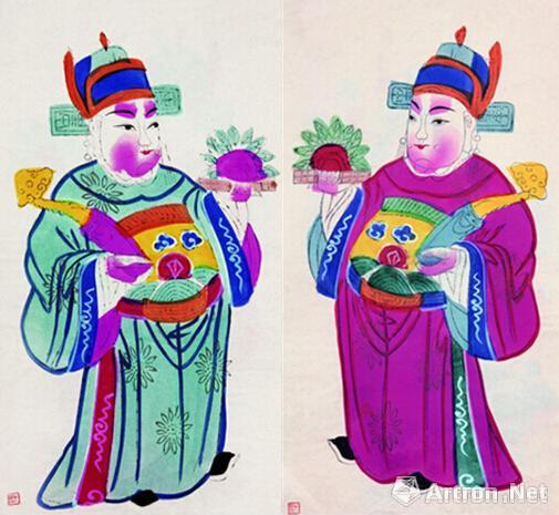 如意状元门神清四川绵竹木版(着色) 52×28cm×2