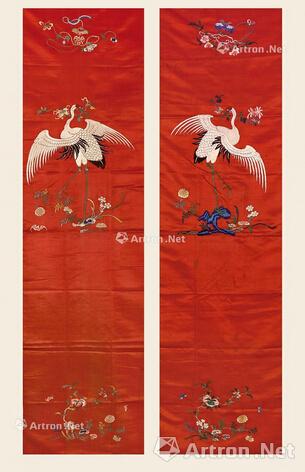 清光绪红地彩绣“一品当朝”椅披(一对) 每条162×48cm
