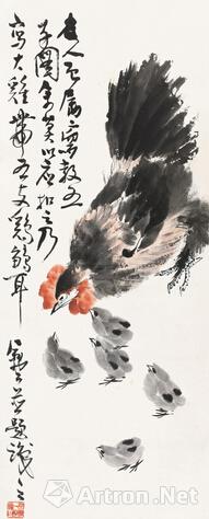 李苦禅五子登科立轴设色纸本94.5×38cm