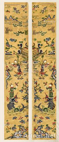 清拉锁绣“独占鳌头”挽袖(一对) 每条画芯8.5×51cm