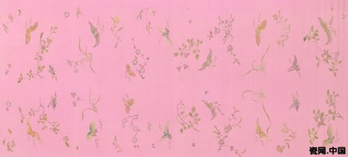图14、粉色洒金彩绘花蝶绢