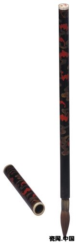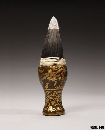 图7、紫漆描金云蝠纹管鬃毫抓笔