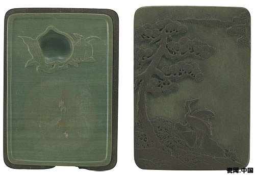 图23、歙石双螭寿字池长方砚