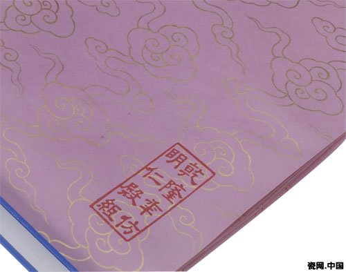 图17、粉色仿明仁殿画金如意云纹粉蜡笺
