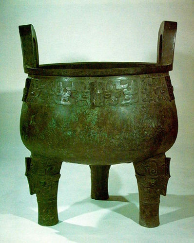 大盂鼎,又称廿三祀盂鼎。通高1021mm;口径784mm;腹深490mm;重153.5kg,现藏于中国国家博物馆。其形制为:立耳;深垂腹,腹上部饰曲折角兽面纹;足上部饰外卷角兽面纹、出脊,足下部略呈蹄形。鼎内铸有铭文19行,共291字。铭文分为两个部分,分别记载了周康王对贵族盂的训诰和赏赐。真实地反映了当时的社会状况,具有极高的史料价值。