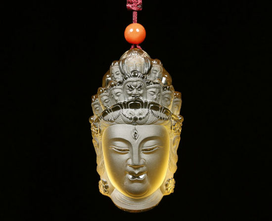 中国玉石雕刻大师邹小林作品《黄晶无量寿千手观音挂件》