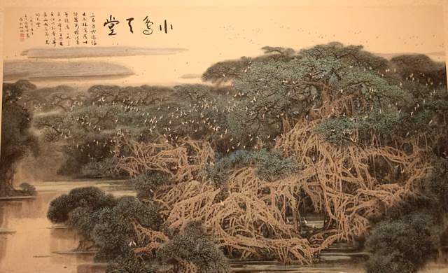 伍启中,广东新会人,现为广东画院副院长。其画作《小鸟天堂》长3.1米,宽2.1米,于2005年1月26日被人民大会堂收藏。