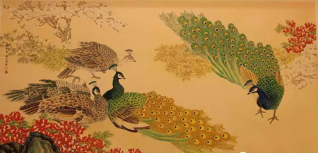 作者苏百钧,1951年8月生于广东广州。中国美术家协会会员,中央美术学院教授。2009年,受邀为人民大会堂金色大厅绘制5.45米×3.02米的巨制《孔雀凤凰花木图》。