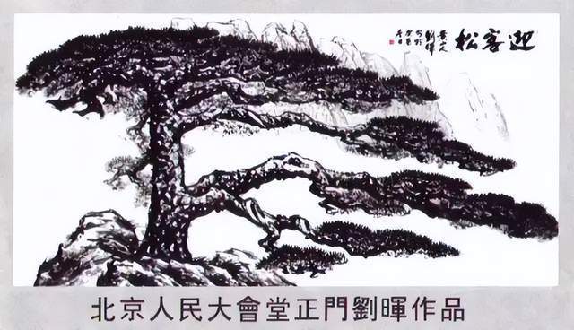 黄山有四绝:奇松、怪石、云海、温泉,首绝当推奇松。刘晖乃黄山人,生于斯,长于斯,从小放牧村前屋后的松林间,所以对黄山松情有独钟。他画的松堪称一绝,人民大会堂正门巨幅国画《迎客松》就是其代表作。