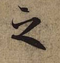 第二个“之”字:“会稽山阴之兰亭”,横撇重合近乎一线,捺笔有使转,轻笔出锋。布白上紧下鬆。(此段文字来源于网络)
