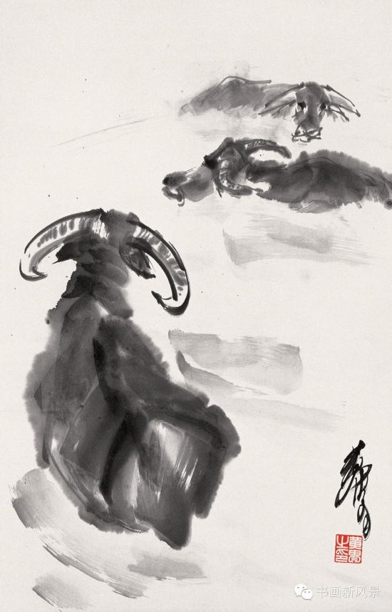 黄胄先生以画驴著称,殊不知他也特别爱画牛。因为黄胄先生是属牛的,所以他笔下的牛就更添了一份与生俱来的灵动。