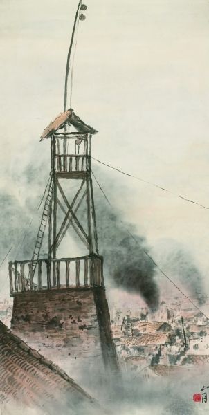 警报台(国画) 关山月