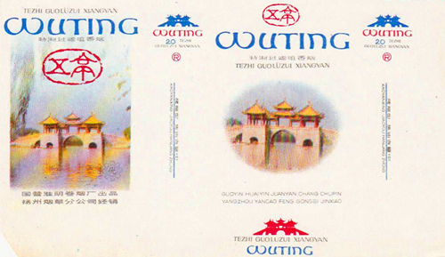 扬州,古称广陵,地处江苏中部,历史悠久,文化璀璨,商业昌盛,人杰地灵。有着“淮左名都,竹西佳处”之称,又有着中国运河第一城的美誉,也是中国首批历史文化名城。在我国烟草工业企业出品的烟标中,有很多品牌都带有扬州元素。