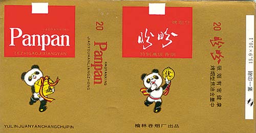 ⑤上世纪90年代陕西榆林卷烟厂出品的“盼盼”烟标。
