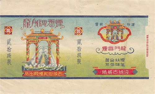 ①在古城忠和烟厂出品的“龙门”烟标上,一条鲤鱼正跃出水面、跳向龙门。