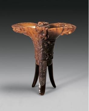 晶莹白玉凝犀角,烂漫红衣绣虎斑。 犀牛角是清热解毒的名贵药材,在古代就与夜光璧、明月珠齐名。而今犀牛属于濒危保护动物,犀角不可能再被用作角雕材料,犀牛角雕作为中国古代艺术品中的一朵奇葩已成了绝响。 汉唐始,犀角从域外入贡,因其稀少和奇特的药用功效,经济价值日趋凸现。如今流存于世的犀角雕器多为我国明清两代所制。相传犀牛角有解毒辟邪之功能,如同毒药接触,则毒药发生白沫,因而被帝王所重视,制为杯盏等器皿,以检验食品,从而使犀牛角雕刻成为古代角雕的著名品种。宫廷匠师多依据犀牛角的自然形状,雕刻酒杯,供帝王享用。 亚洲犀牛角 犀角扳指 犀角手串珠 犀角佛珠 犀角手镯足够做成一只圆镯,这个尺寸的犀角也很难得 犀角蝉挂饰 犀角观音 螭虎饕餮纹杯 螭龙三足杯 梅花杯 莲花杯 虎头杯