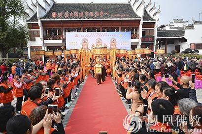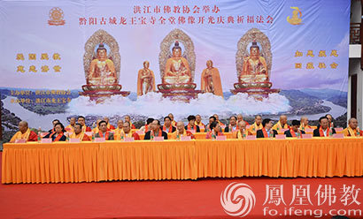 湖南洪江黔阳古城龙王宝寺全堂佛像开光祈福法会庆典仪式在黔阳古城东门口广场隆重举行(图片来源:凤凰佛教)