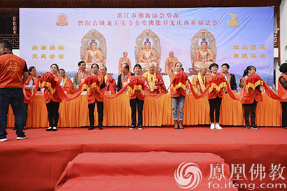 诸山长老为龙王宝寺全堂佛像开光剪彩(图片来源:凤凰佛教)