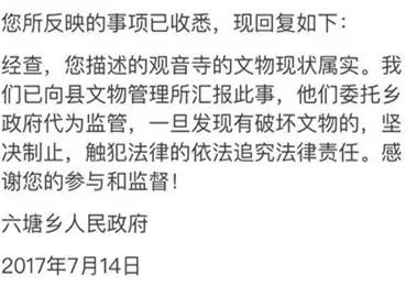 2017年7月14日,六塘乡人民政府向市民的反映进行了回复: