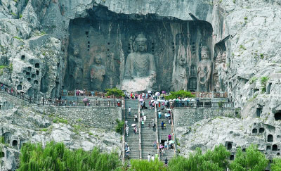 从洛阳市区驱车向南12公里,远远就可以看到伊河两岸相对而立的龙门山和香山,两山相望,就像一座天然的门阙。春秋战国时期,这里被称为“伊阙”。隋代,洛阳被定为东都,“伊阙”成了天子门户,改名“龙门”。