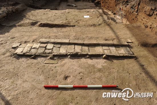 东市遗址某处店铺房屋的散水砖迹。