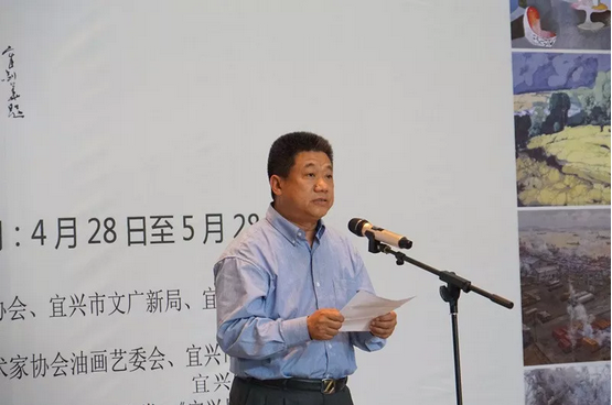 宜兴市人大副主任赵菊明致欢迎词,表示本次高水准的油画展为五一节日中的宜兴市民提供了一场精彩的艺术盛宴。
