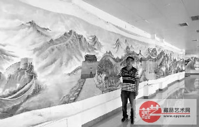 在偌大换乘中心大厅内,百米油画很是显眼,远远望去,以长城东部第一关老龙头冬天冰雪消融开始,在油画中,仿佛至身长城,穿行北京八达岭、居庸关、紫荆关、雁门关、娘子关等关隘,直至嘉峪关,山峦叠翠,云雾缭绕。“长城画完后,我还将画上70只仙鹤在长城中飞翔,寓意给国庆的贺礼,代表祝贺中华人民共和国成立70周年。”