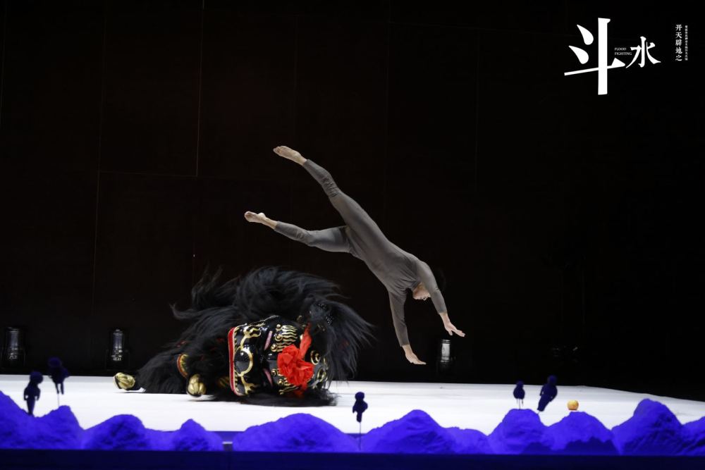 1月22日,形体特技故事剧《开天辟地之斗水》在天桥艺术中心小剧场上演。北京杂技团携手来自英国、荷兰的现代舞编导全新演绎“女娲补天”的创世故事。