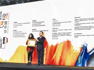 深圳市文改办主任王跃军为最佳设计奖获得者颁奖。