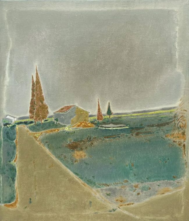 戴家峰笔下的风景,也始终是心中的风景,而非现实的复制。他的作品超脱了同辈艺术家常见的写实,以清新、悠远、高级的画面调子,将观者带入充满灵性的岁月长河,既有美好与诗意,又有苍凉与深邃。其色彩运用浪漫而沉着,以平面化的表达手法,摒弃繁复的技法修饰,专注于情感的传递,让画面自带诗韵与诗魂。每一笔笔触、每一块色彩,都不是刻意为之,而是内心悸动的自然流露,作品看似简约明了,实则蕴含着丰富的诗意情绪与深刻的思想情感,越品越有韵味,极具耐看性与品鉴价值。